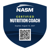 I currently hold a Certified Nutrition Coach (CNC) credential from the National Academy of Sports Medicine (NASM)
